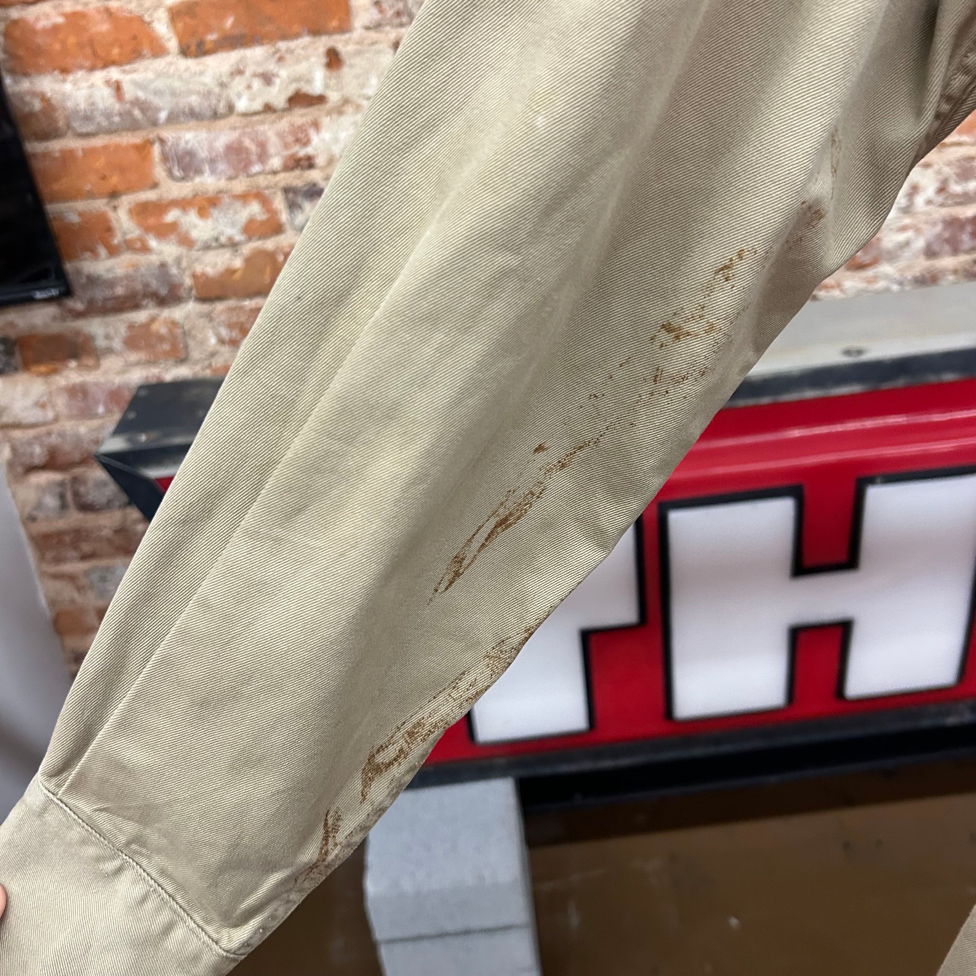 Stains down right sleeve pictured